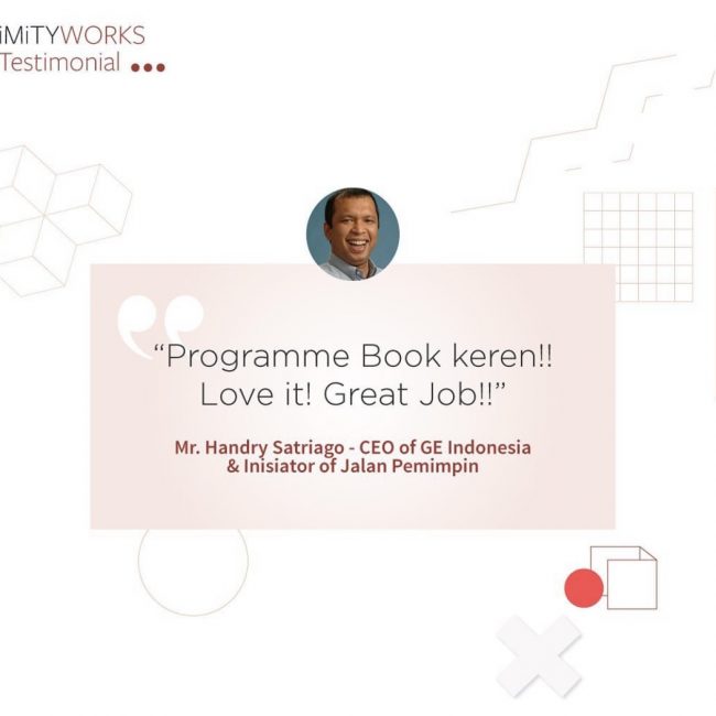“Program Book keren!! Love it! Great Job!!” by Handry Satriago, CEO of General Electric 2 September 2019 ”